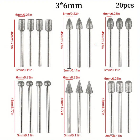 20PC Diamond Grinding Heads for Jade Carving and Sanding
