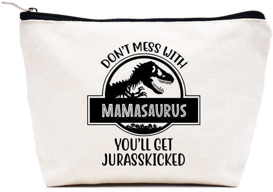 Dont Mess with Mamasaurus Youll Get Jurasskicked - Funny Dinosaur Birthday Christmas Novelty Present Ideas for Mom - Presents For Mom From Husband Son Daughter – Makeup Bag Cosmetic Bag Travel Pouch